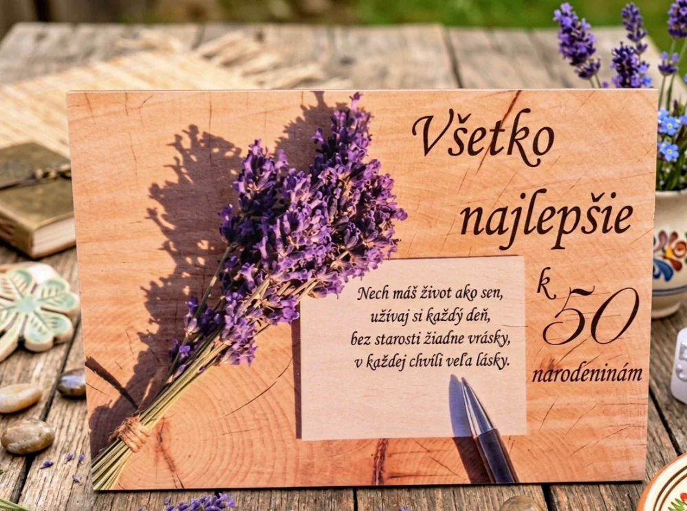 Drevená tabuľa s venoviním na 50 rokov. Veľkosť A4.