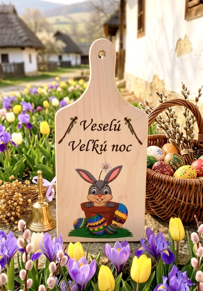 Drevený lopárik Veľká noc s potlačou zajačika.