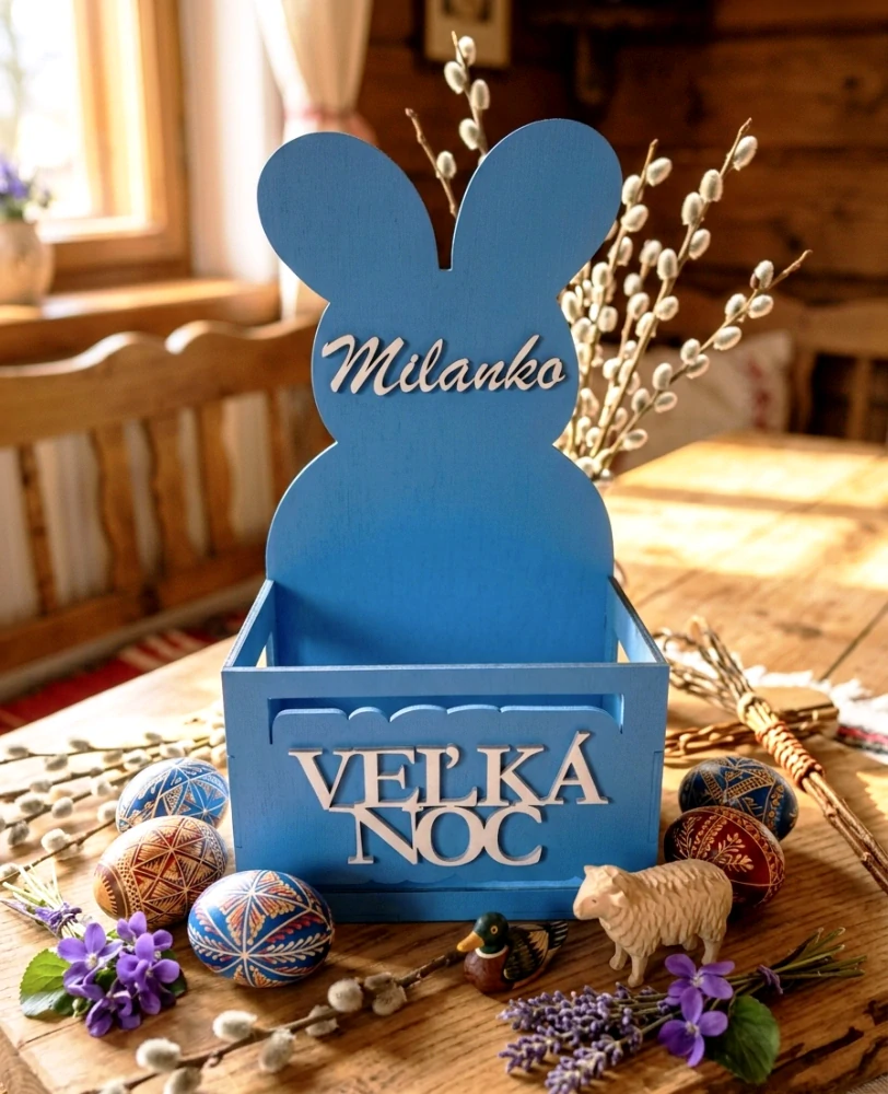 Veľkonočný zajačik na darovanie výslužky s možnosťou doplnenia mena pre malého šibača.