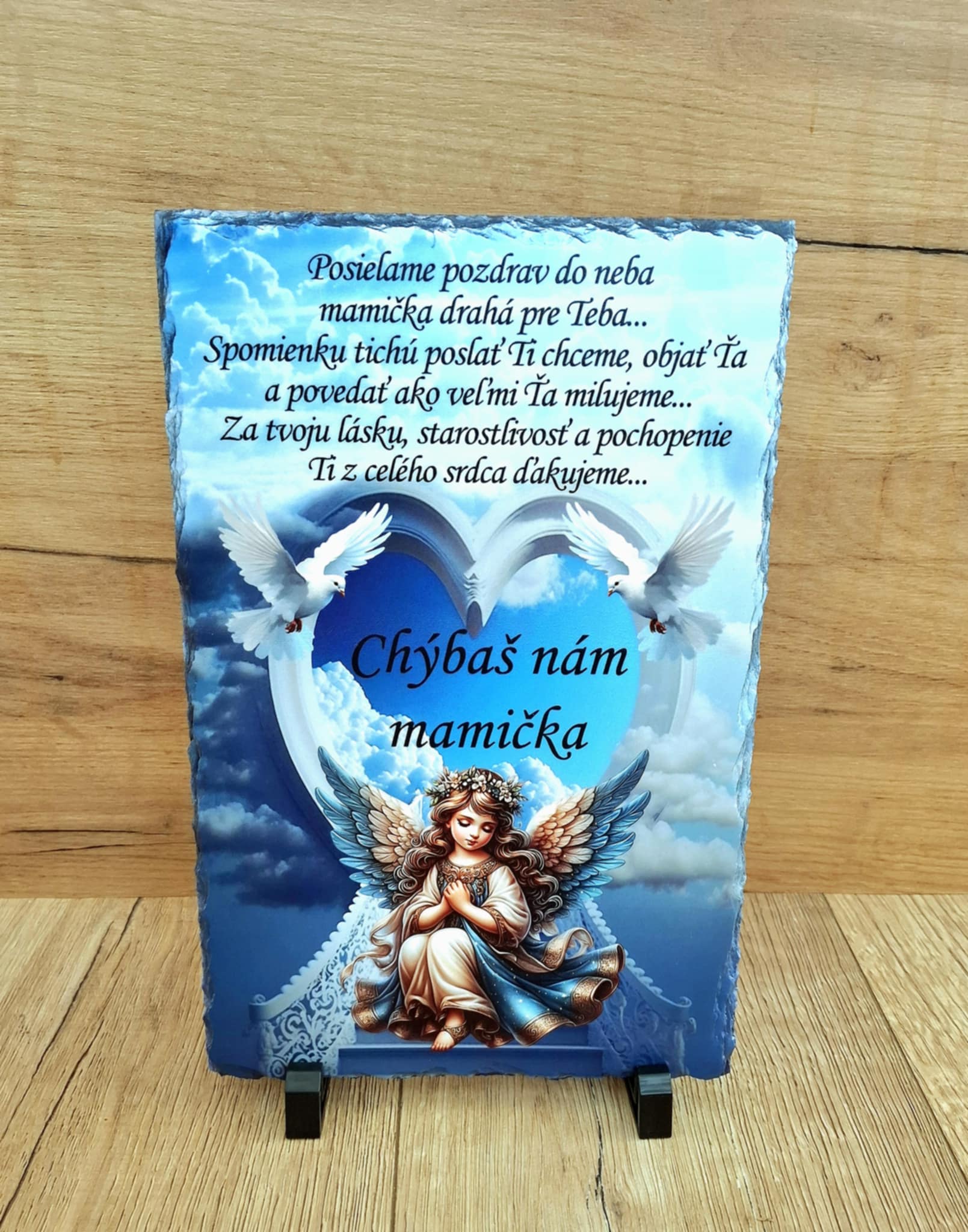 Dekoračný prírodný kameň na hrob Posielame pozdrav do neba ...Skladom 1 ks20 €/ ks