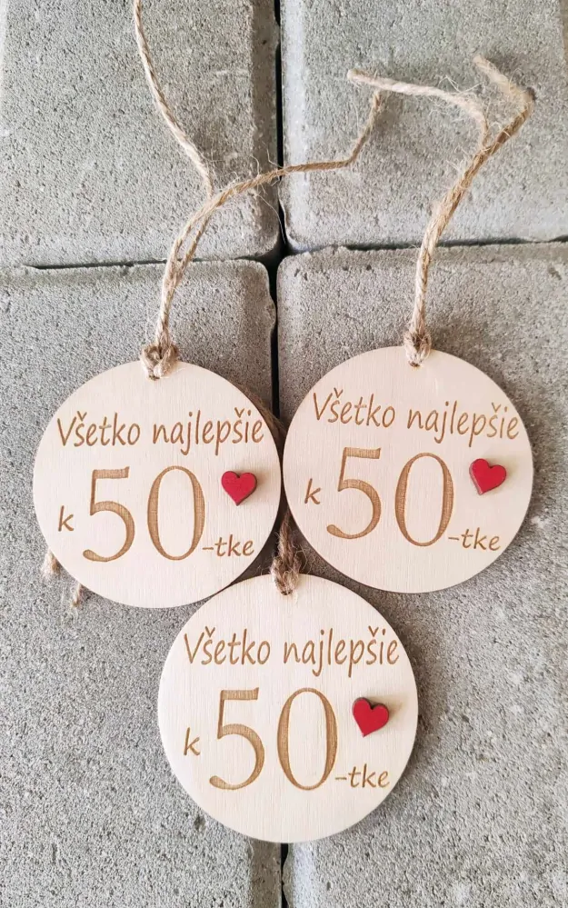 - Drevená etiketa na fľašu Všetko najlepšie 50
