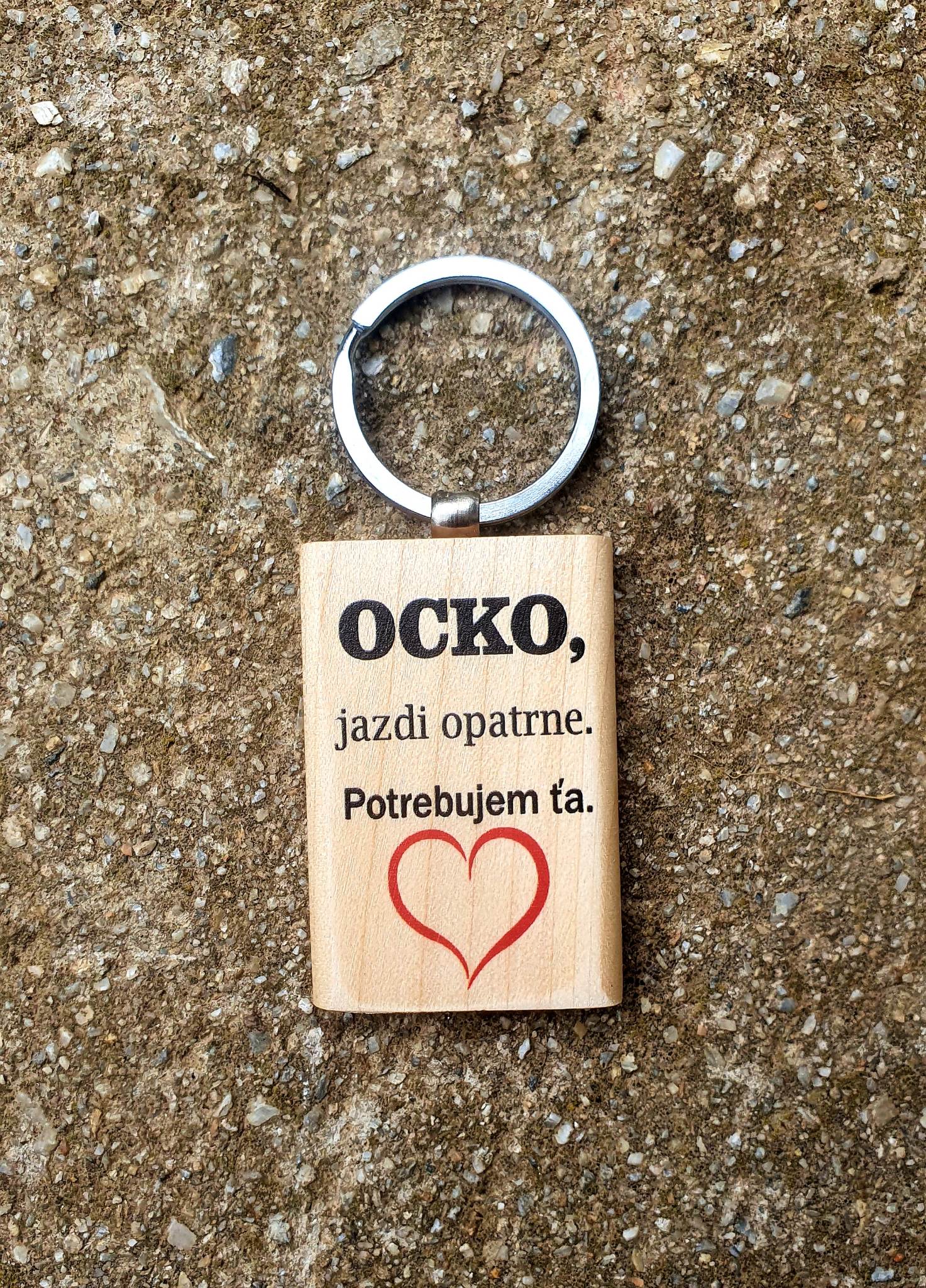 Drevená kľúčenka Ocko, jazdi opatrne.Skladom 134 ks3,30 €/ ks