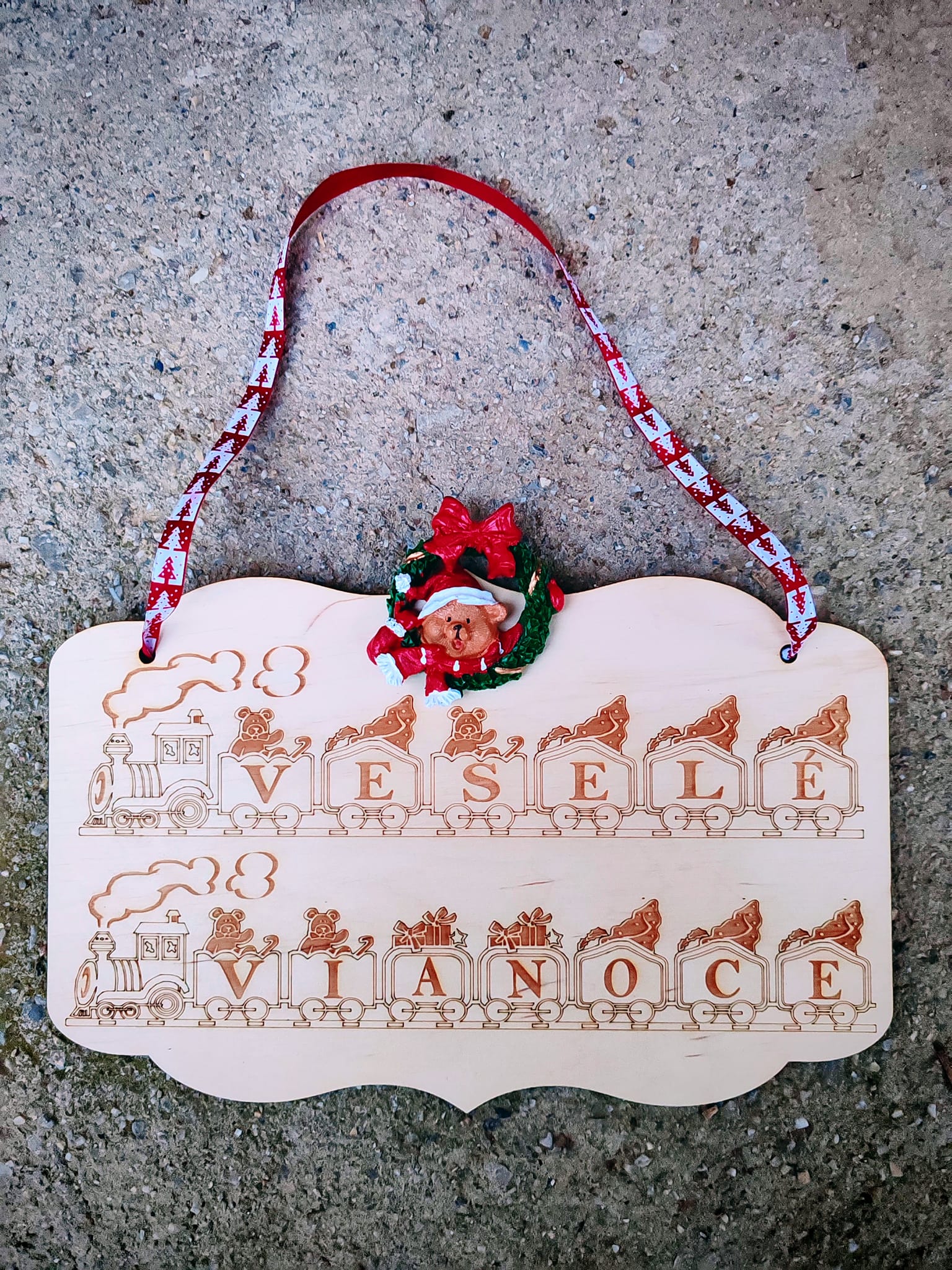 - Drevená Vianočná dekorácia na dvere Veselé Vianoce
