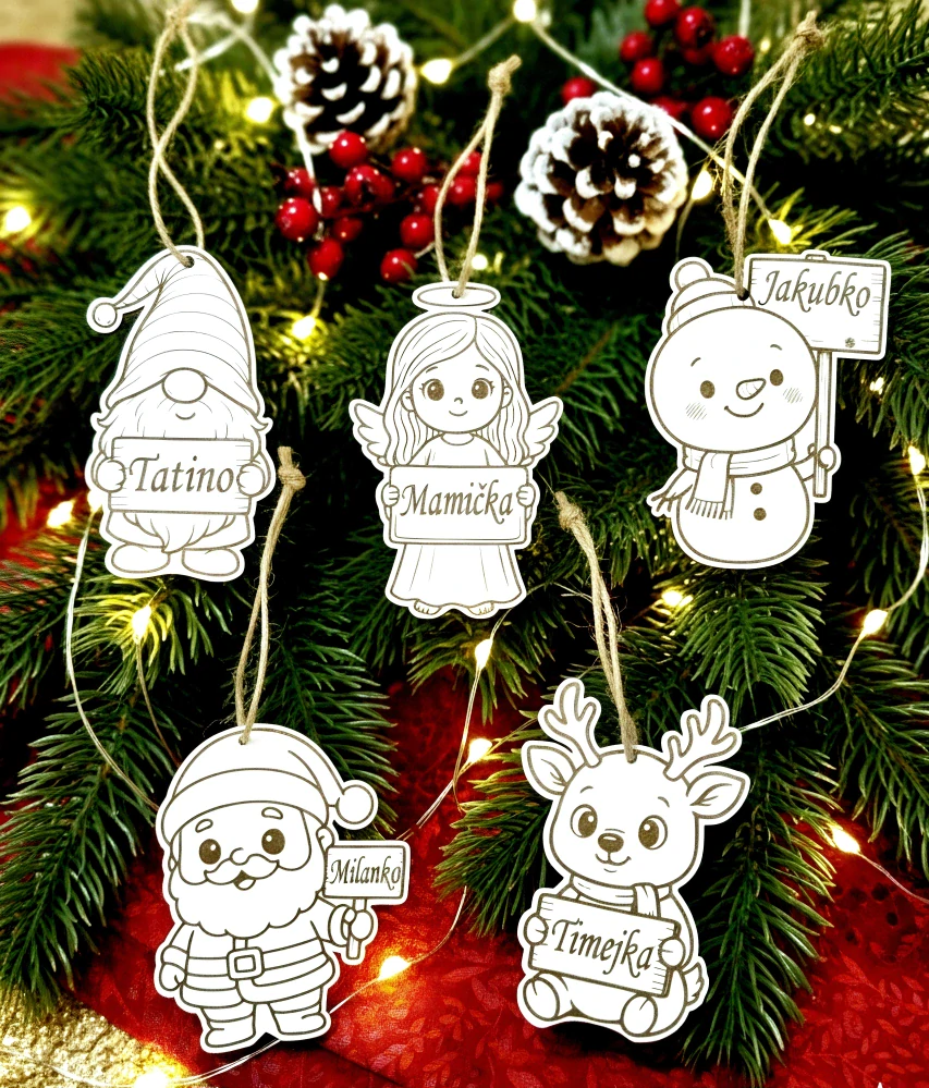 Drevená vianočná ozdoba Anjelik, Mikuláš, Sob, Snehuliak, škriatok