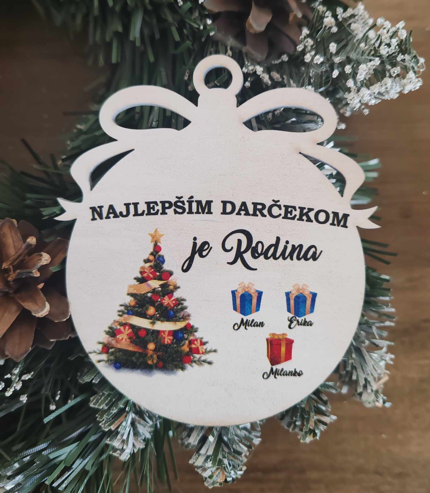 Drevená vianočná ozdoba Najlepším darčekom je rodina