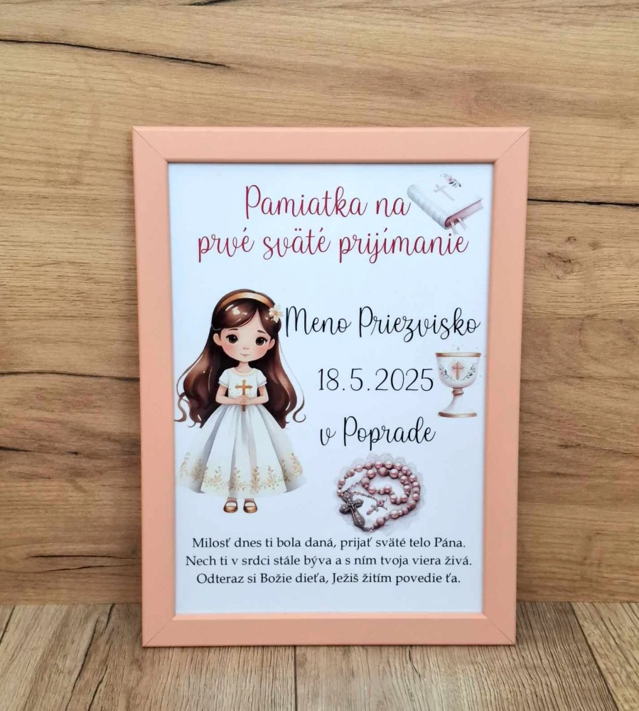 - Drevený fotorám pamiatka na prvé sväté prijímanie dievča