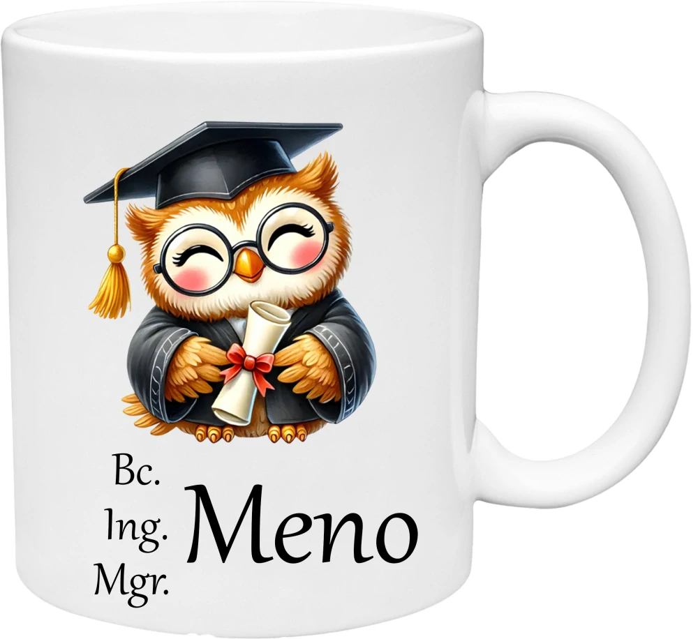 Hrnček k promóciám Sovička. Vhodný do umývačky riadu a do mikrovlnky. Hrnček je zabalený do krabičky.