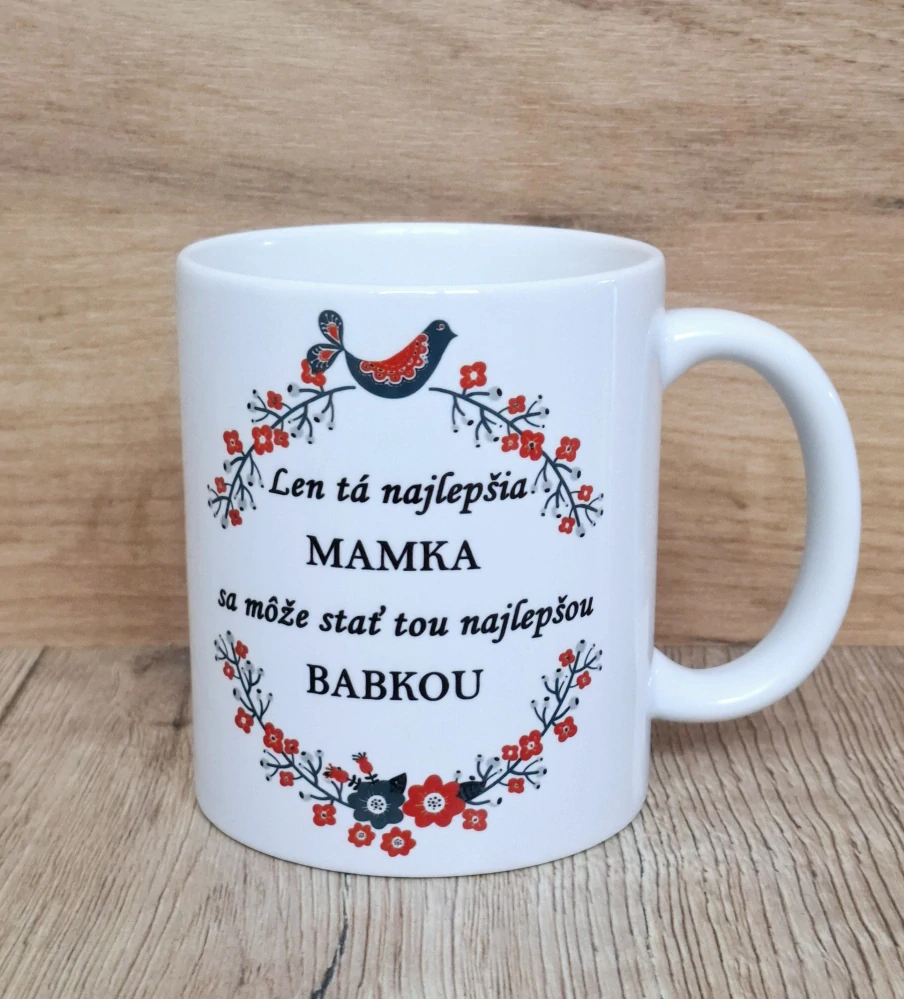 Keramický hrnček Len tá najlepšia mamka sa môže stať tou najlepšou babkou rnček je zabalený do krabičky.