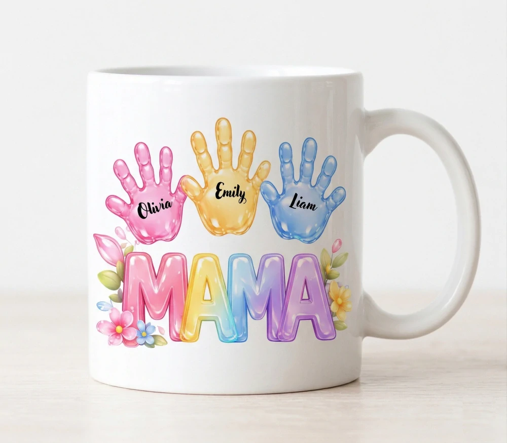 Hľadáte darček, ktorý povie viac než tisíc slov? Náš personalizovaný hrnček "Mama" s farebnými odtlačkami detských dlaní je oslavou materstva. Každý dúšok obľúbeného čaju alebo kávy jej pripomenie to najcennejšie, čo má – jej deti. MAx 5 mien