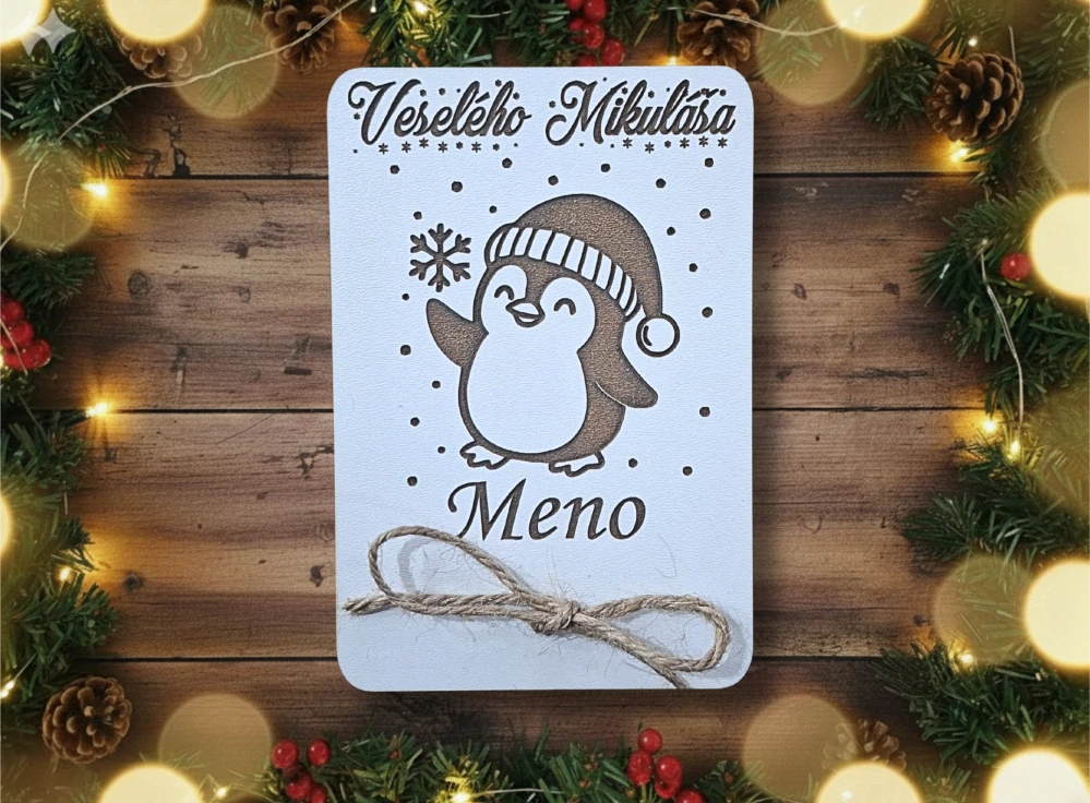 - Mikulášska drevená tabuľa na darovanie peňazí alebo čokoládky - Pingvín