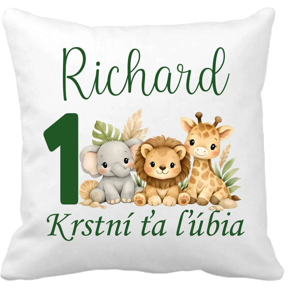 Pamätný vankúšik na narodeniny s venovaním zvieratká