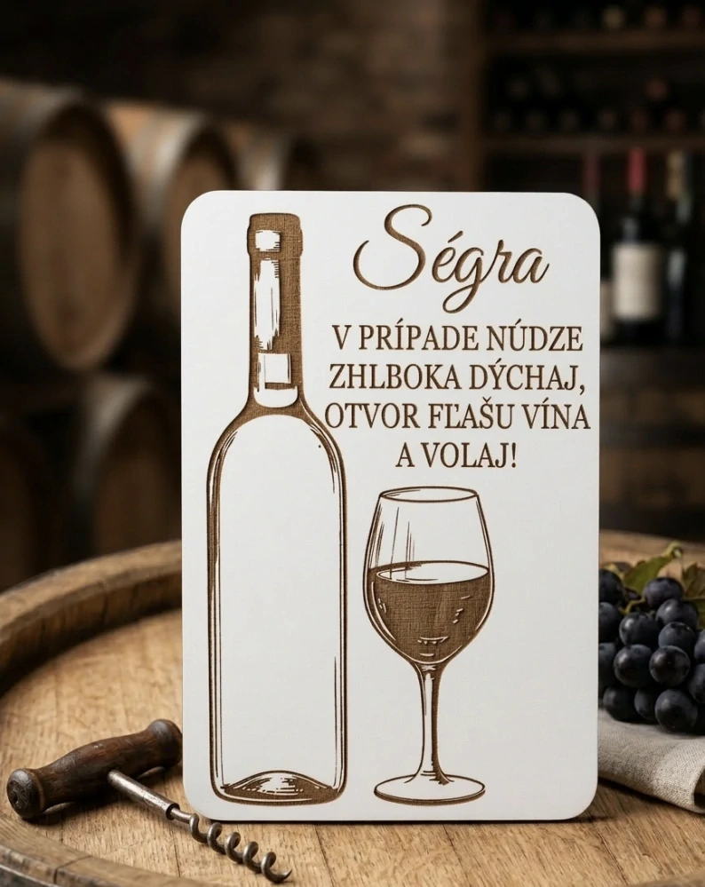 - Tabuľka V PRÍPADE NÚDZE ZHLBOKA DÝCHAJ, OTVOR FĽAŠU VÍNA A VOLAJ!